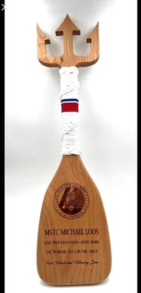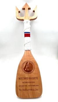 Trident Paddle Oar Custom Engraved Solid Cherry wood award.